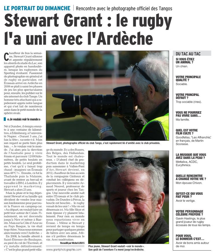 Stewart Grant: le rugby l’a uni avec l’Ardèche (Dauphiné Libéré)